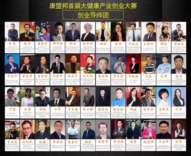 原南方报系副总裁,南友圈创始人苟骅;商界传媒集团总裁周忠华;寻医问药集团创始人郑早明;决胜网董事长阙登峰;蓝卡健康集团董事局主席于浩波;南极圈合伙人沈宁;南极圈副总裁刘希军;人力资源和社会保障部教育培训中心秦瑞芳处长;国家中医药管理局人才交流中心曲典处长;北大中国战略研究中心金融战略研究所所长高国潮;人民大学健康管理学院院长陈元平;清华大学大学经管学院博导雷家骕;中国保健协会食物营养与安全与专业委员会名誉会长、世健联首席专家孙树侠;中国保健协会食物营养与安全专业委员会会长、白求恩军医学院营养研究所所长刘天鹏;北京亚健康防治协会秘书长张柱;北大1898咖啡厅创始人郦红;创享派创始人兼总经理吴伟;原软银资本投资总监刘晋泽;银杏资本投资总监张亮;清科创投投资总监丁康等组成了气场强大、规格极高的明星创业导师团。