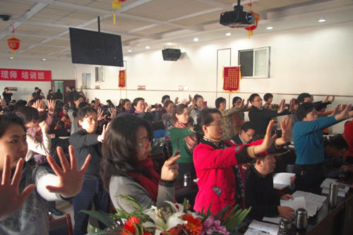 最后:刘老师将一副对联“赢”送给大家,上联:赢在健康、快乐人生、抓住机遇、创造多赢;下联:从不言败、永不服输、绝不放弃、青春永驻、横批:赢在行动、贵在坚持!