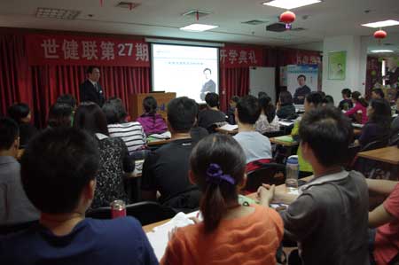 2013年5月5日,北京春暖花开,世健联热闹非凡。今天,27期健康管理师在北京顺利开班。来自北京各大医院、体检中心、社区服务中心、美年大健康等单位50余名学员参加了本次培训。